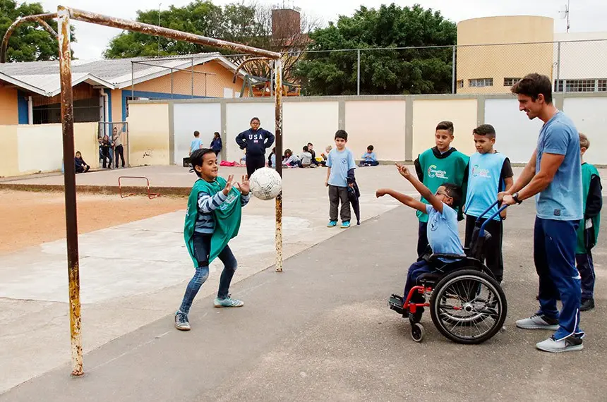 Figura 2: Professor inclui aluno cadeirante em jogo e vídeo viraliza. Foto: Lucilia Guimarães/SMCS
