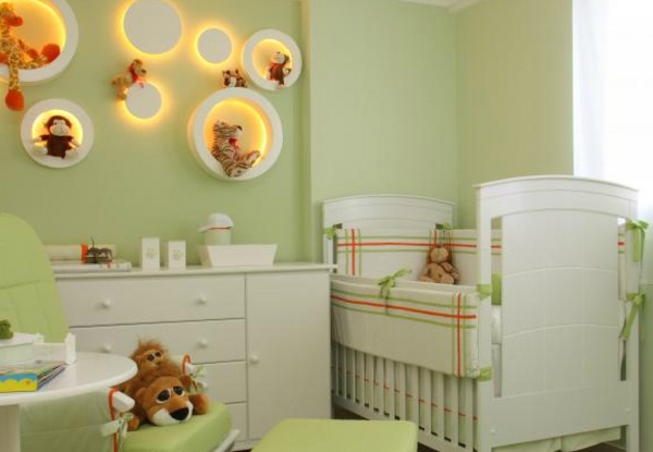 Destaque para a iluminação na parede: além de charmosa, ela é útil para a mãe.